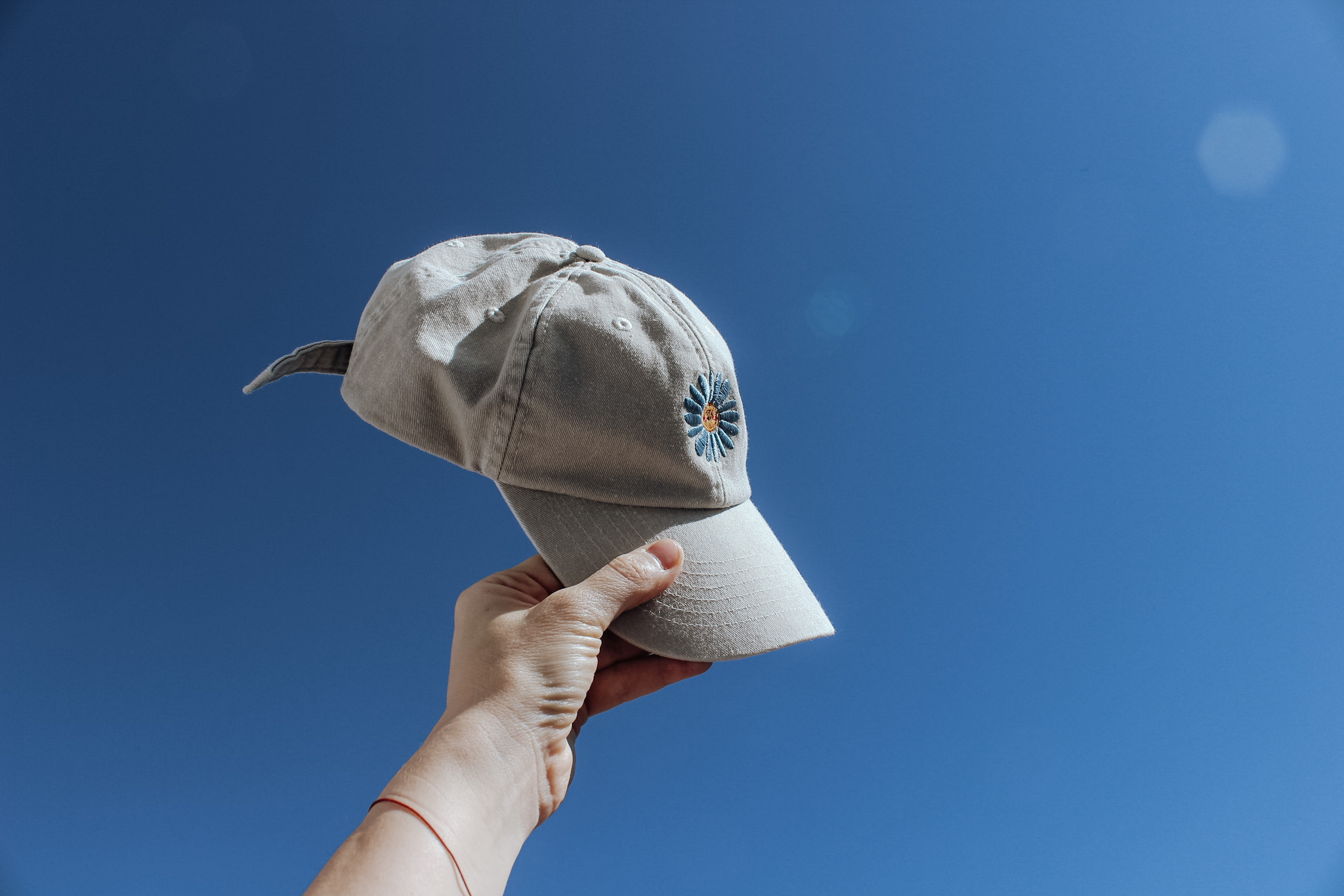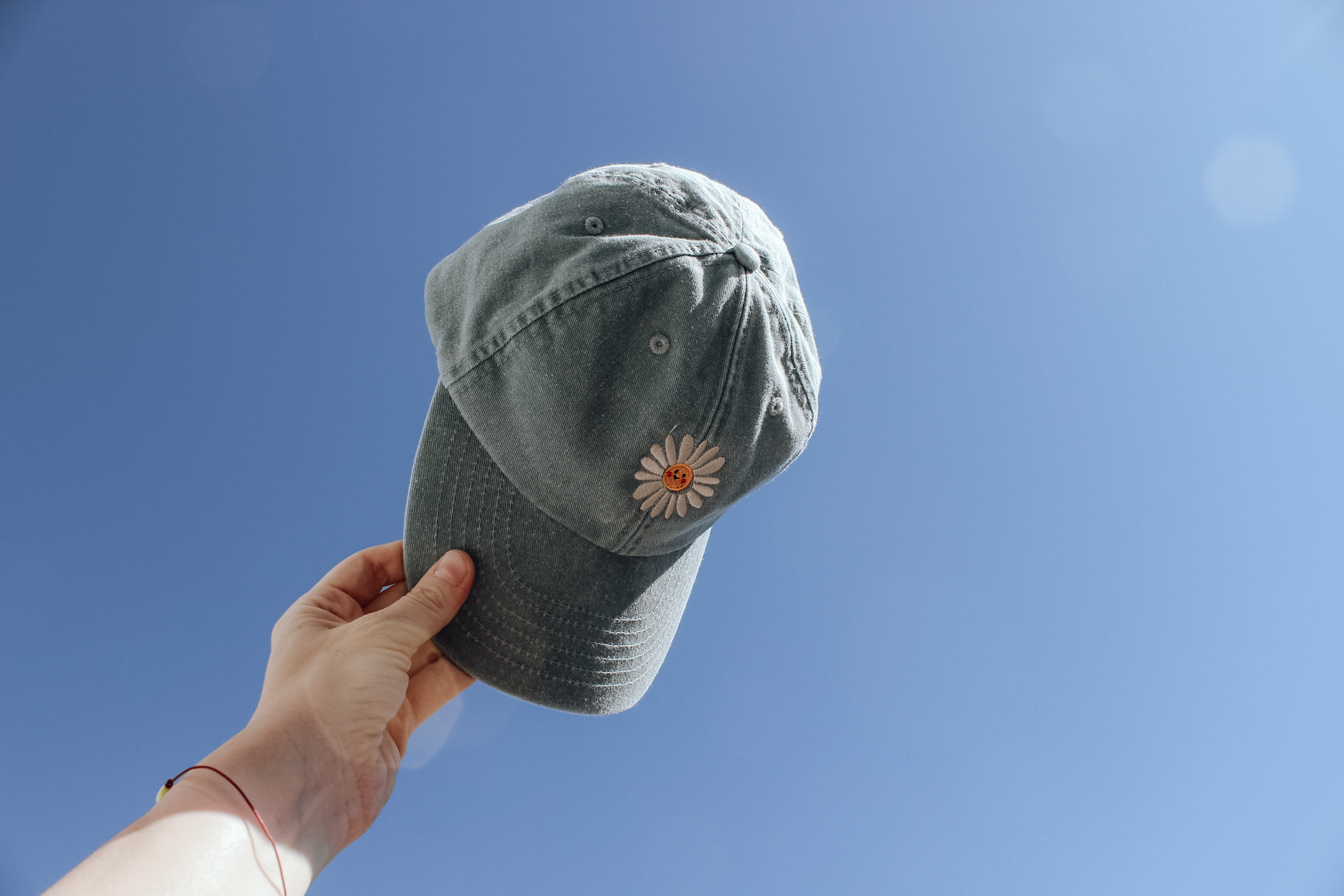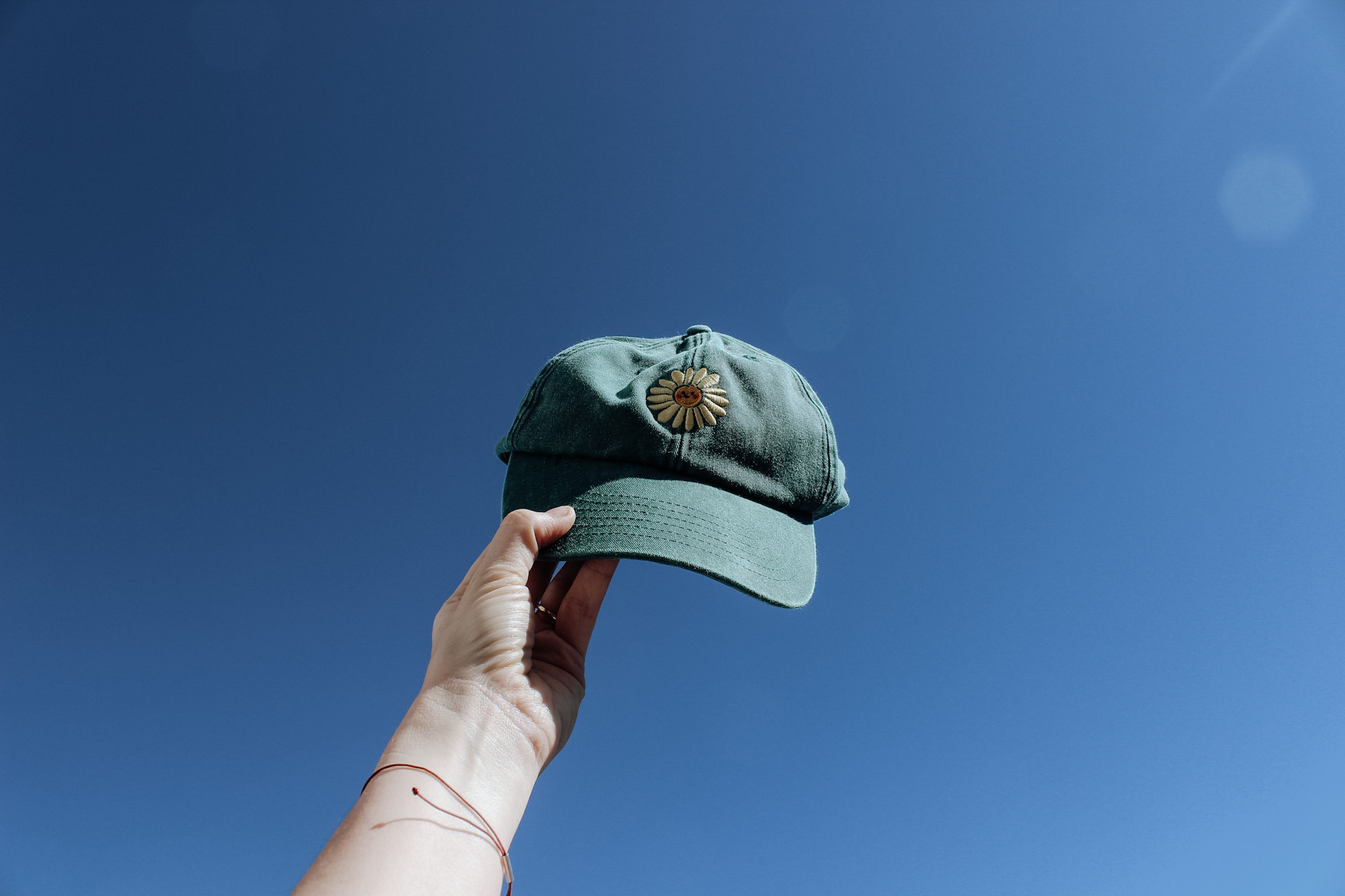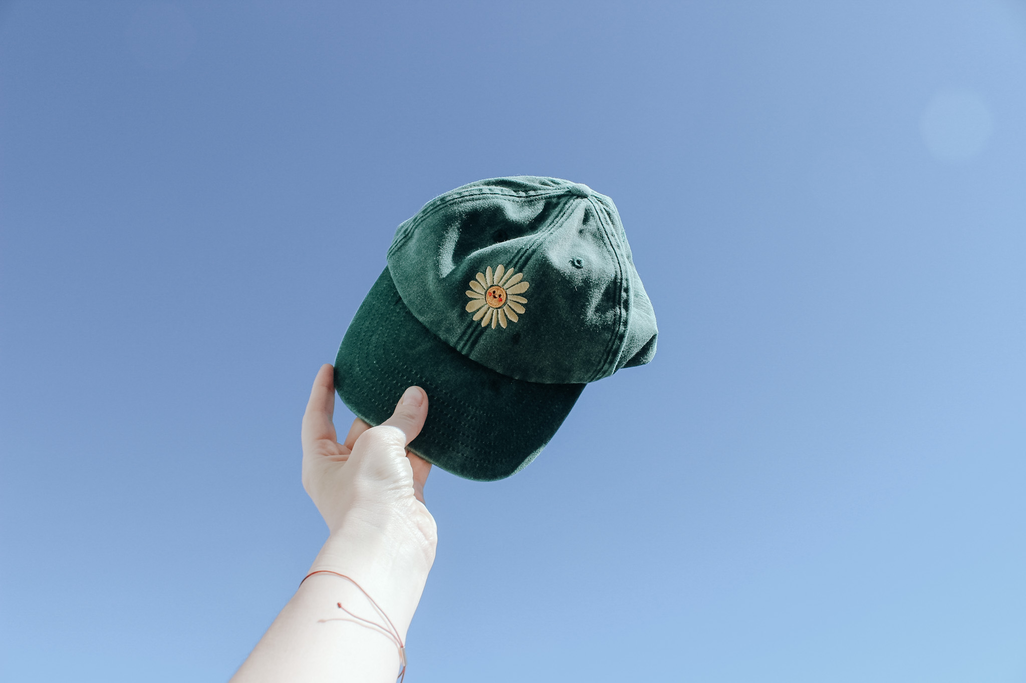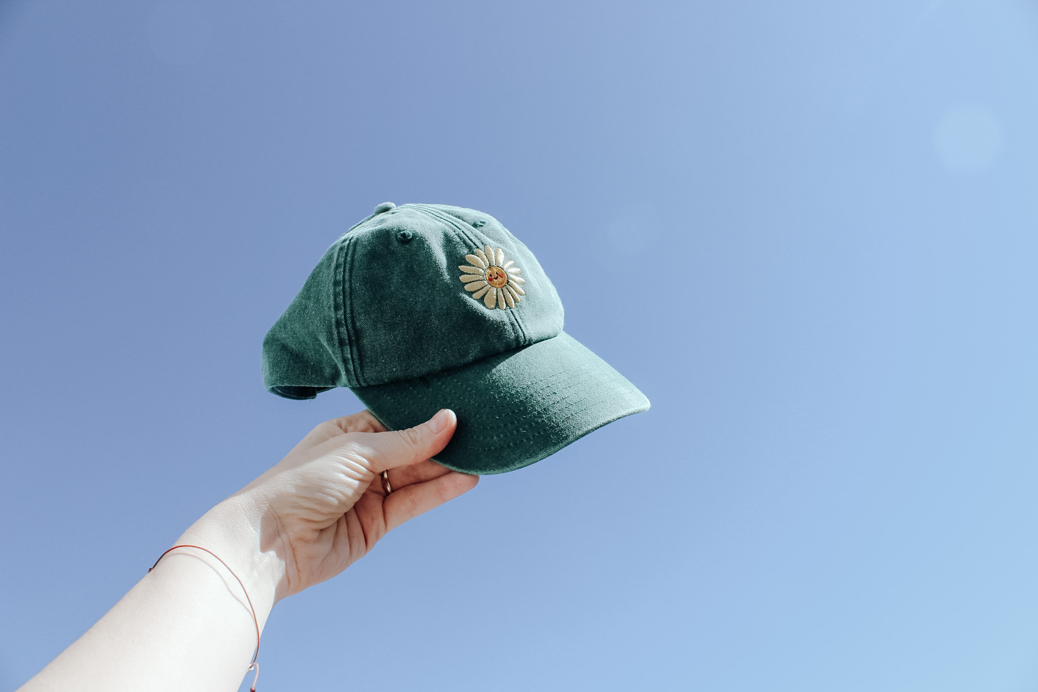 Caps in den Farben Forest Green, Puder, Beige, Vintage Blue